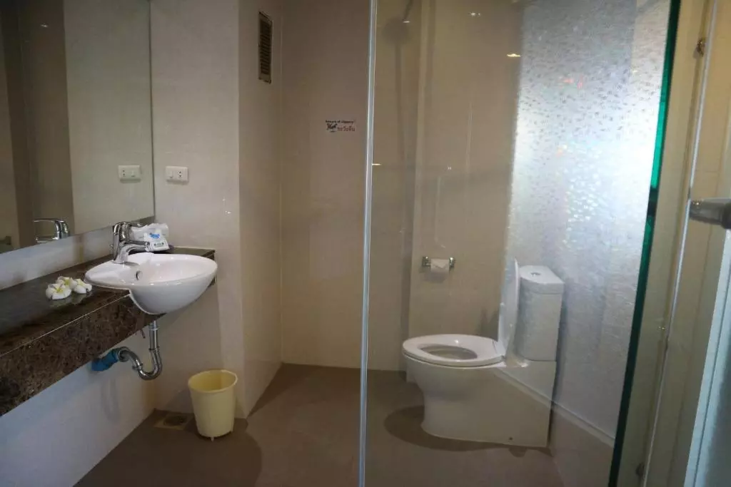 حمام اختصاصی با دوش آب گرم، حوله، و لوازم آرایشی رایگان.