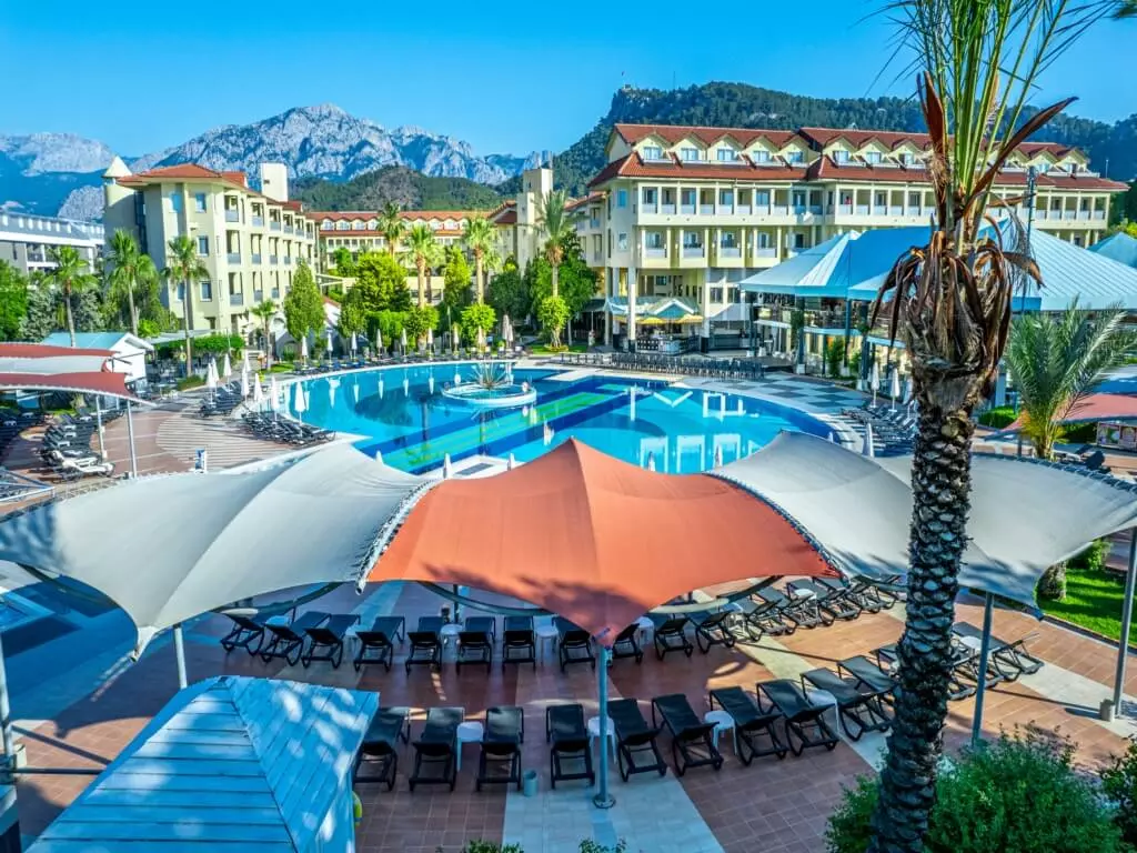 موقعیت جغرافیایی: هتل مستقیماً بر روی ساحل خصوصی (ساحل شنی-شندار) قرار دارد و در منطقه کیریش (Kiris) در نزدیکی کمر واقع شده است. این مکان در سواحل مدیترانهای ترکیه (ریویرای ترکی) قرار دارد، با منظرهای زیبا از کوههای توروس و پارک ملی المپوس (۹ کیلومتری هتل). ساحل خصوصی هتل با چترهای آفتاب، صندلیهای راحتی و بار ساحلی مجهز است.