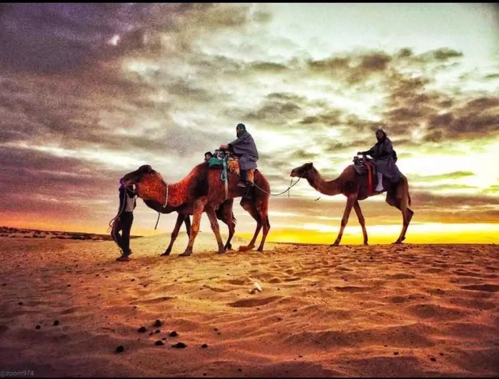سوار شدن بر شتر و تماشای غروب خورشید در تپههای شنی.