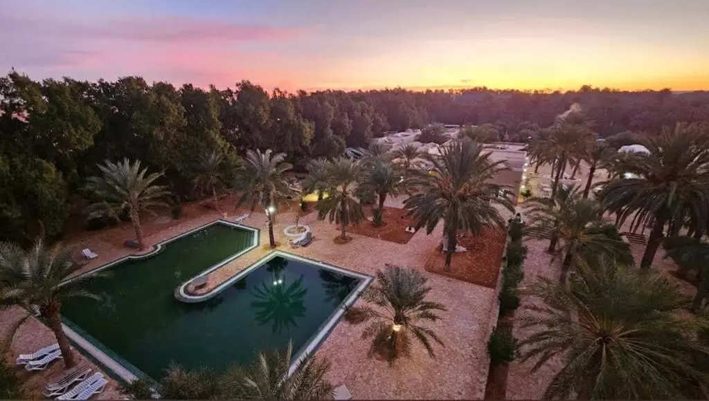 اطراف هتل: واحهای کوچک با نخلستانها، تپههای شنی اولیه صحرا، و نزدیکی به جاذبههایی مانند قلعه رومی Ksar Ghilane، جشنواره بینالمللی صحرا (International Festival of the Sahara)، و تورهای شترسواری یا quad biking در بیابان.